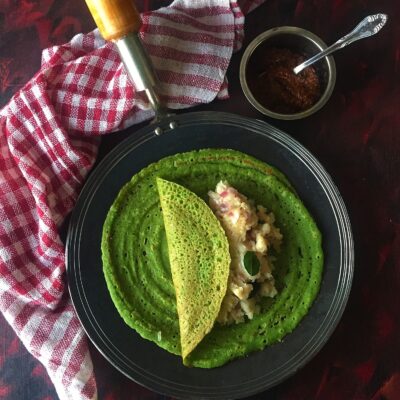 Crispy pesarattu stuffed with soft upma