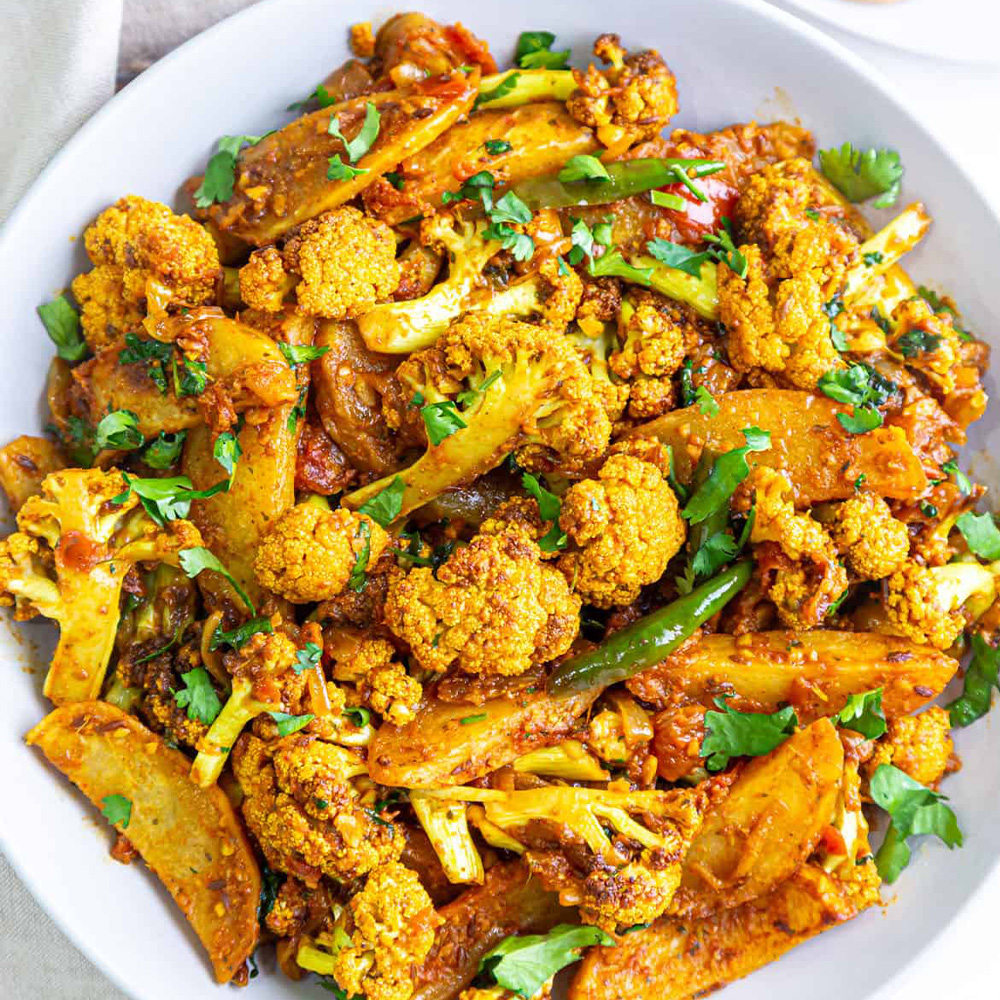 - Potatoes and cauliflower cooked with spices