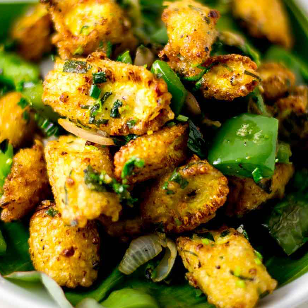 - Baby Corn tossed in temper sauce style seasoning and spices